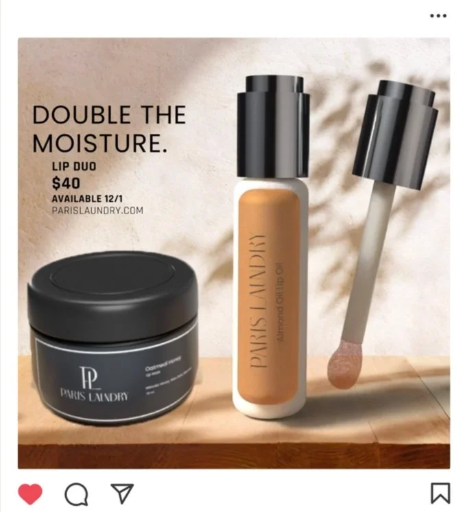 In designing the packaging for our Lip Duo, we drew inspiration from Paris Laundry's existing products. Lip mask’s primary packaging is a pot as we wanted to optimize the thick texture, control the application, and allow for minimal waste. The Almond Oil Lip Oil packaging takes inspiration from Paris Laundry’s existing oil packaging as well as existing lip oil packaging. It is a doe foot applicator that ensures precise, easy application and portability, making it perfect for on-the-go use.